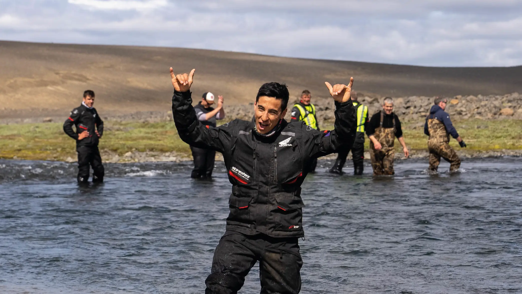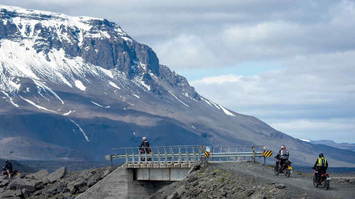 Motocykel Africa Twin je dokonalým partnerom pre skupinu 30 jazdcov, ktorí sa zúčastnili na tomto jedinečnom dobrodružstve na ceste po drsnej islandskej mesačnej krajine.