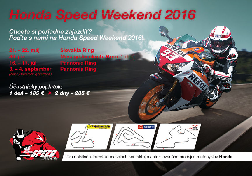 Vážení zákazníci, tešíme sa na vás na akcii Honda Speed Weekend 2016!