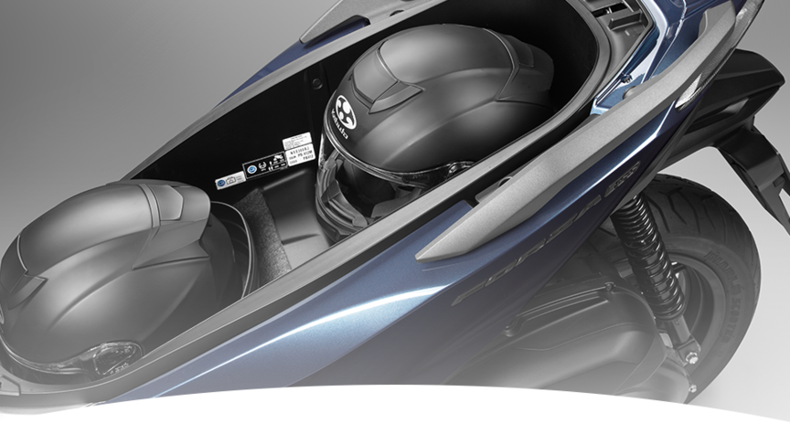 Do schránky pod sedadlom je možné uložiť dve integrálne prilby, ktorá teraz ponúka zväčšený priestor zo 48 na súčasných 53,5 litra. Schránku je taktiež možné prehradiť a do jednej časti uložiť prilbu, zatiaľ čo druhá časť poslúži na uloženie vybavenia do dažďa, ktoré má formát balíčkov s veľkosťou hárka A4. Schránka umiestnená v ľavej prednej časti kapotáže je uzamykateľná a jej vnútorný priestor si môže jazdec usporiadať podľa svojich požiadaviek, napríklad na uloženie telefónu alebo fľaše s vodou. V tomto priestore sa taktiež nachádza 12 V (1 A) zásuvka.