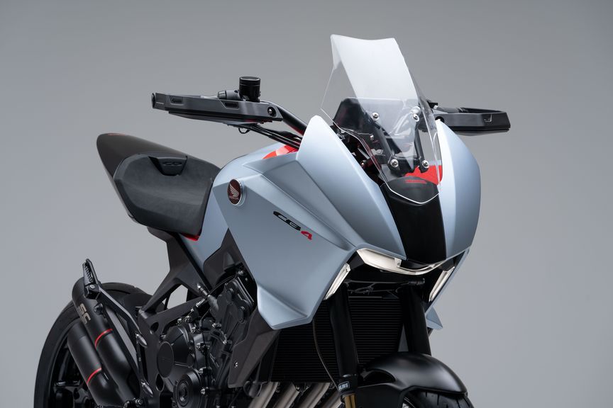 Na pohon stroja sa použil klasický radový štvorvalec – prvok charakteristický pre krídlo Honda Wing. Palivová nádrž vystupuje vpred, ako kobra pripravená na útok na svoju korisť, zatiaľ čo štítok je plynulo nastaviteľný a integrovaný do kapotáže. Svetlomet je v kapotáži vedľa svetiel na denné svietenie (DRL) usadený ako diamant a vyžaruje z neho agresívna prepracovanosť. Elegantný hliníkový podsedlový rám zdôrazňuje krátku a ostrú zadnú časť, zatiaľ čo 17-palcové predné koleso prispieva k presnému riadeniu.