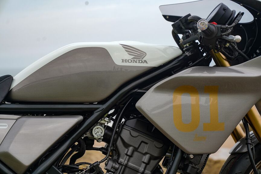 Tretiu priečku na stupňoch víťazov tohtoročného ročníka Hondacustoms zaujal nemecký CL Surfer, ktorý sa inšpiroval krásnymi plážami a pohodovou surferskou atmosférou Biarritzu, kde sa festival Wheels and Waves koná. Model CL Surfer, ktorého autormi sú členovia tímu vlajkového dílerstva Honda Centre vo Frankfurte (@hondamotorrad_de), sa do tejto atmosféry skvelo hodí: má palivovú nádrž, predné a zadné blatníky v striebornej metalíze (s charakteristickým modrým pruhom), dvojdielne riadidlá, nový výfuk a výrazné hnedé kožené sedadlo.