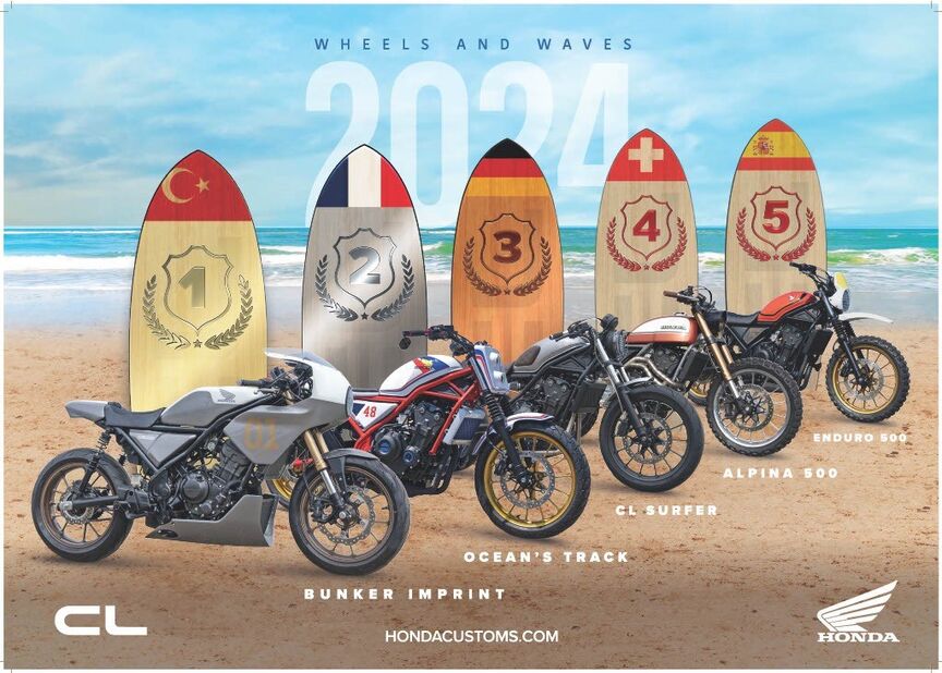 · Rok 2024 bol pre súťaž Honda Customs dosiaľ najväčším ročníkom, pretože sa počas neho na stránkach www.hondacustoms.com a v rámci festivalu Wheels and Waves v Biarritzi predstavilo 16 motocyklov z 9 európskych krajín